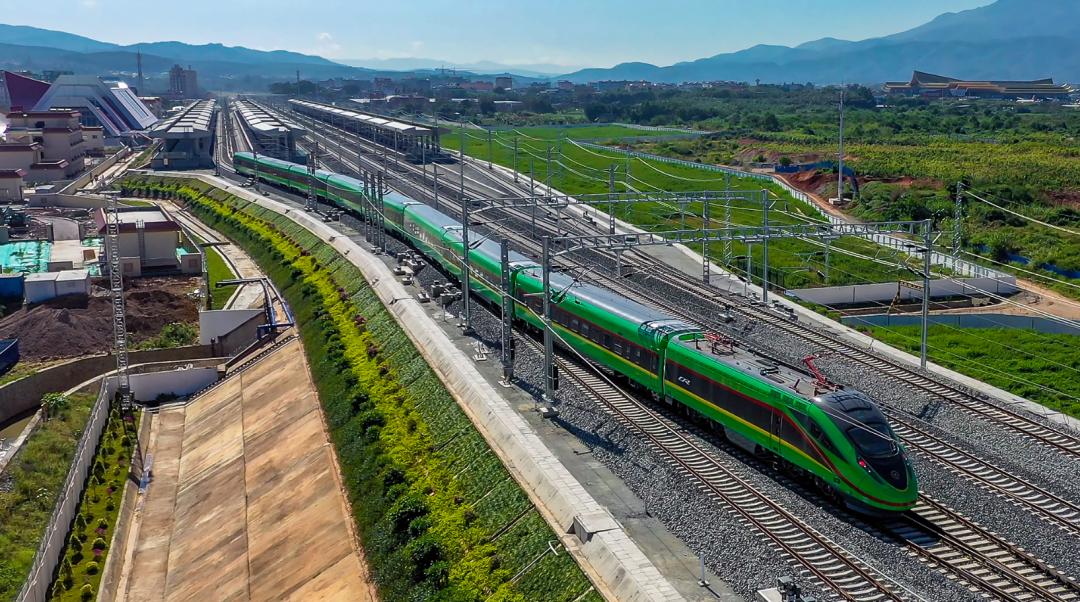 中老铁路北起中国昆明,南至老挝万象,全长1035公里。现在,昆明至万象货物列车全程最…